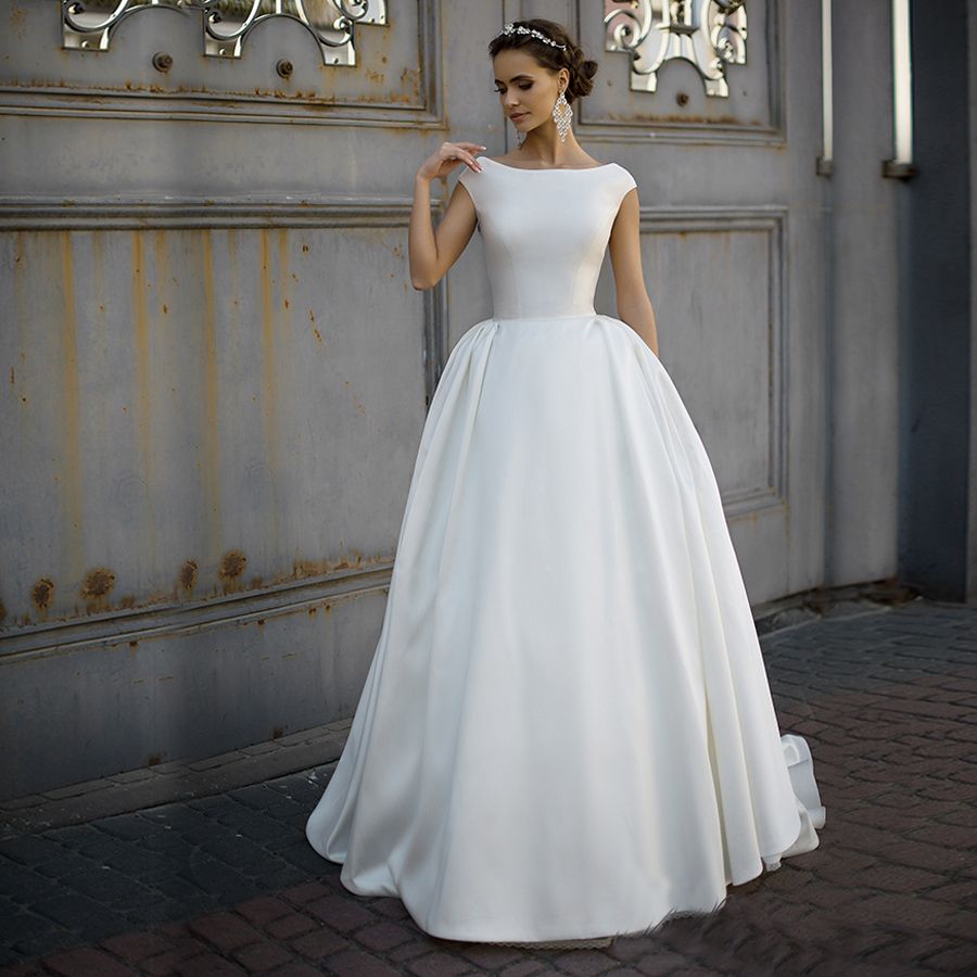 High Neck Sleeveless Plain Satin A line Wedding Dress Open ... from ae01.alicdn.com Find the perfect wedding dress for your big day. The right neckline is a defining element of your wedding gown; This ball gown wedding dress is perfect for a bride who wants something simple but that still makes a statement. Simple wedding dresses 2019 illusion high neck wedding gowns long sleeves vestido de noiva white ivory bride dress. New arrival mermaid wedding dresses 2019 high neck sheer long. High neckline hair fashion dresses. Are you one of the brides, who don't dream about luxurious princess wedding gowns, but want to have something simpler? You don't have to feel uncomfortable on your wedding day, with modern wedding dresses meaning less corseting, embroidery and overall weight.